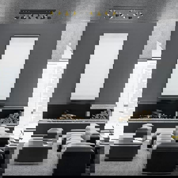 The Joker by Milagro is a range of beautifully hand made designer lights availble in matt black with gold or chrome detail. The Joker has minimalistic slender cylinder shades resembling spot lights and has options ranging from the single wall or ceiling lamp right up to the eye catching 90cm 5 lamp pendant and the 100cm "spotlight bar" with 8 adjustable shades. The contemporary styling is minimalistic with a noble touch due to the luxurious detail and is well suited to complement both modern and classic interiors. All the options are designed for use with ultra low energy GU10 LED bulbs.