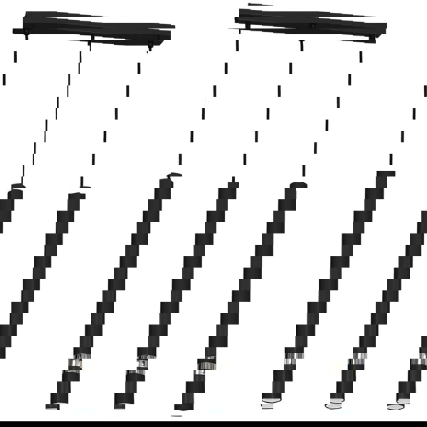 The Joker by Milagro is a range of beautifully hand made designer lights available in matt black with gold or chrome detail. The Joker has minimalistic slender cylinder shades resembling spot lights and has options ranging from the single wall or ceiling lamp right up to the eye-catching 90 cm 5-lamp pendant and the 100 cm "spotlight bar" with 8 adjustable shades. The contemporary styling is minimalistic with a noble touch due to the luxurious detail and is well suited to complement both modern and classic interiors.