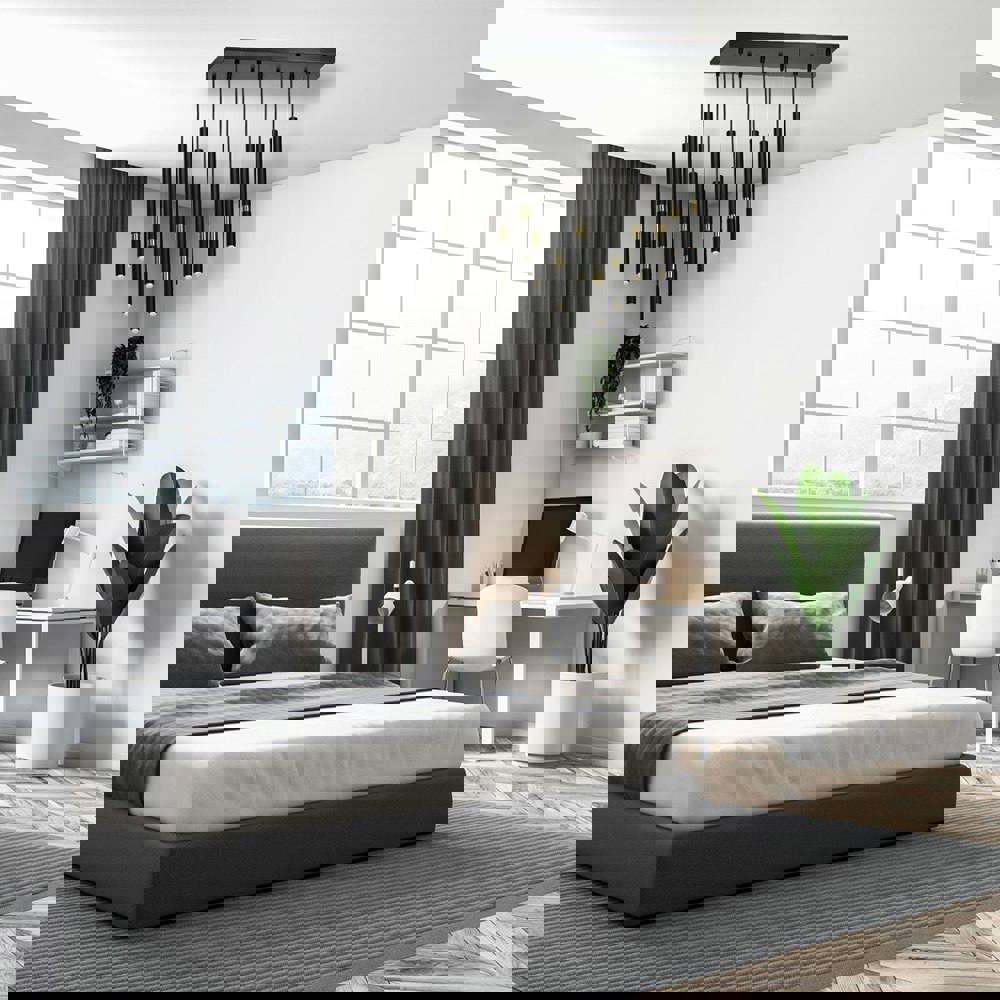 The Monza by Milagro is a striking and artistic hanging ceiling lamp available in 2 styles. They are hand made from high quality alloy and are finished in Matt Black with Luxurious gold detail. The slender cylinders are an interesting and attractive way to illuminate any room and both designs are adjustable in height from 50-90cm in height.