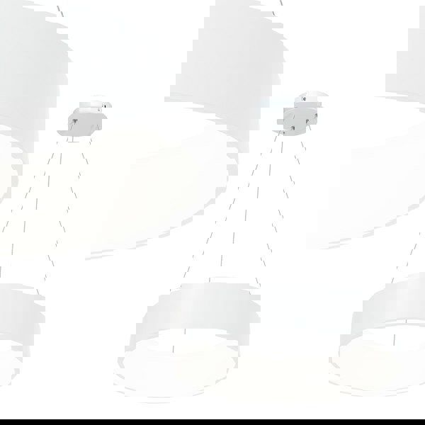 The Ohio is a designer pendant light by Milagro with a diameter of 45 cm. The stylish matt white circular frame attracts attention with its clean, simple appearance. The use of LED technology ensures a long life and low energy consumption. The 24W LED module produces 1680 Lumen, which is equivalent to a traditional bulb of 122W, making it a great option for living room, dining room, or kitchen.