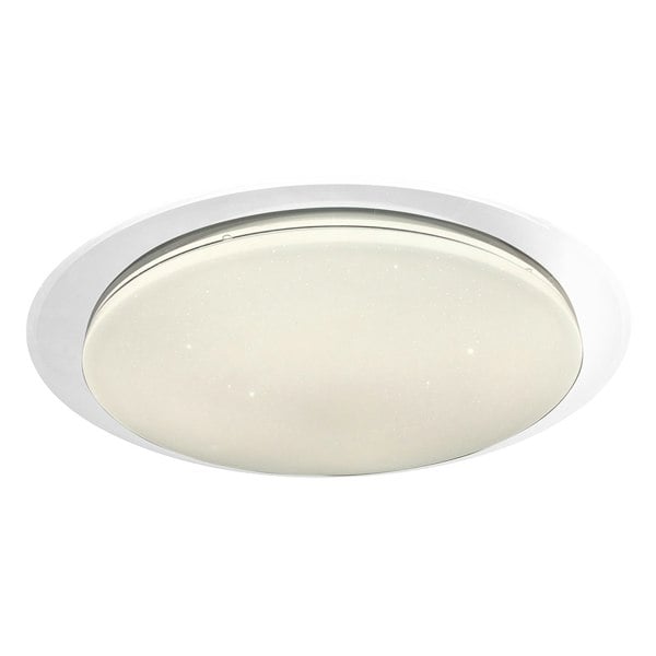 The Ontario by Milagro is a stylish modern LED ceiling light finished in white. The 24W included light source is adjustable for colour temperature and brightness, and the remote control even offers a "Star Effect" option. It has a diameter of 40 cm and a depth of 8 cm.