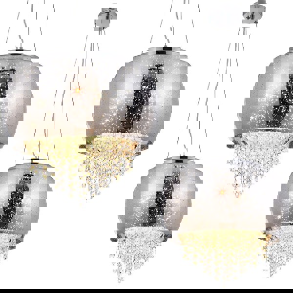 The Starlight Range from Milagro are a truly stunning series of lamps, finely crafted from glass and chrome. The beautiful 22cm shades house the chrome fitments and gorgeous crystals, giving a wonderful light pattern from low energy E14 bulbs. The Starlight makes a fascinating and glamorous addition to any lounge or bedroom, with the pendant lamps adjustable from 50-90cm in height.
