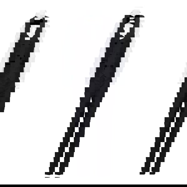 Elevate your little gentleman's style with this sophisticated 5-piece slim fit suit, which includes a luxurious 2-button jacket with velvet lapels, trousers with an adjustable waist, a matching 4-button waistcoat, a crisp white shirt, and a coordinating bow tie.