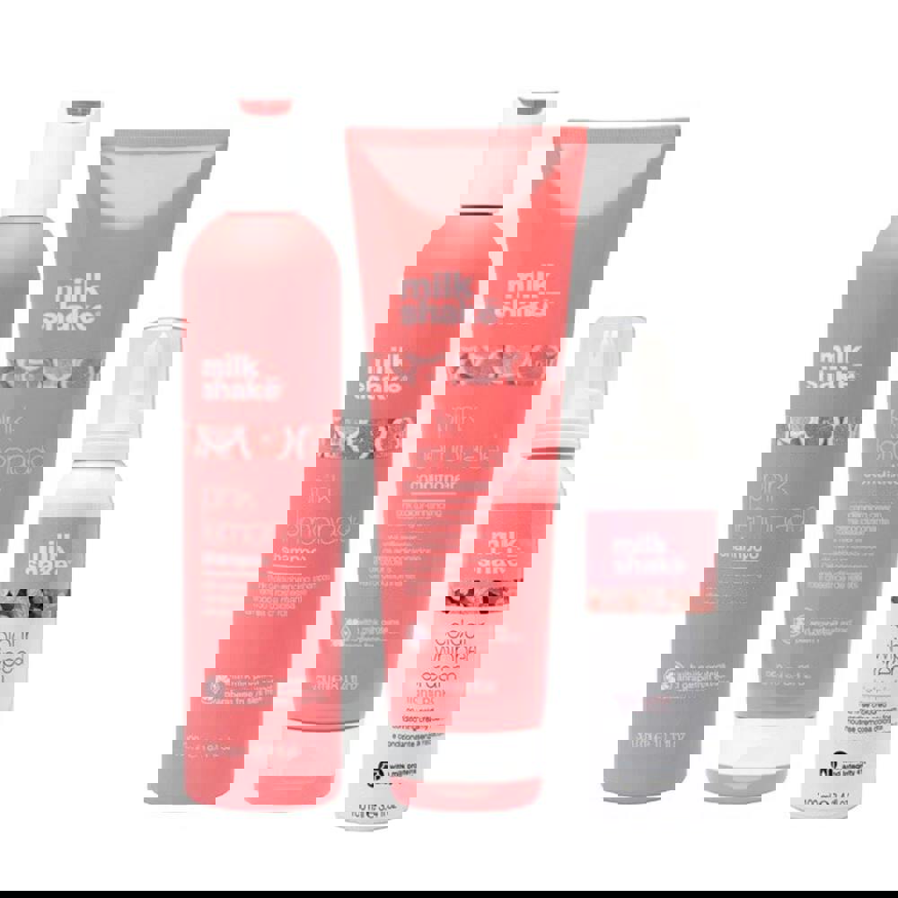 milk_shake PACK Pink Lemonade Shampoo 300ml, Pink Lemonade Conditioner 250ml & Coloured Whipped Cream Light Pink 100ml