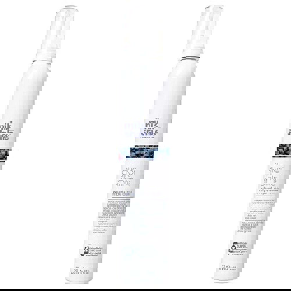 This awesome best selling milk_shake Silver Shine Whipped Cream Leave In Conditioner combines the restructuring benefits of milk proteins, vitamin rich blueberries and violet pigment to brighten and neutralise unwanted yellow tones in blonde or grey hair.