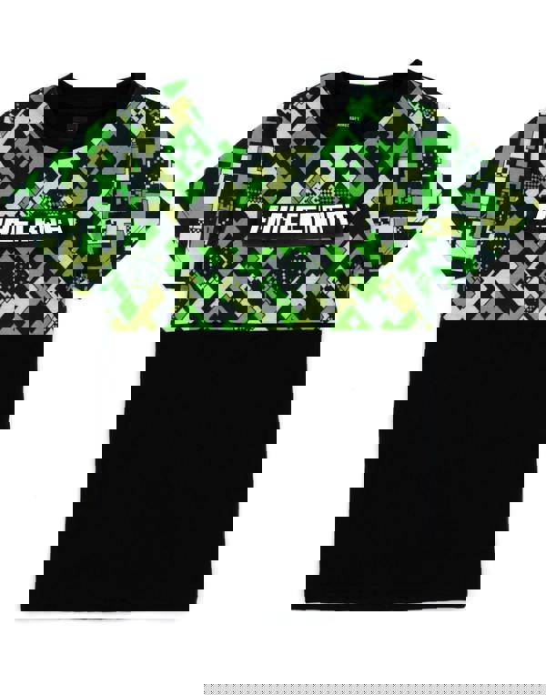 The striking geometric print in shades of black and green enhances the overall appeal, creating a fun and playful aesthetic that reflects the Minecraft theme