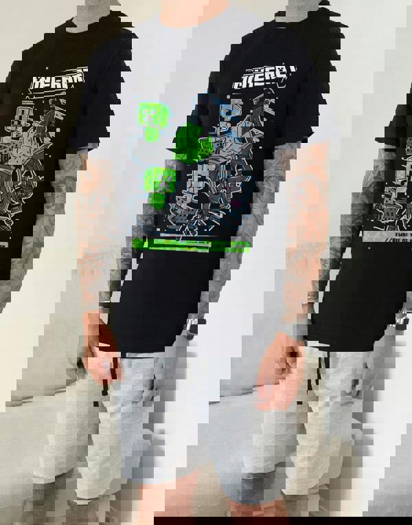 Introducing the Minecraft Creeper Enderman Mens Black Short Sleeve Short Leg Pyjama Set, designed for dedicated gamers and fans of the iconic franchise