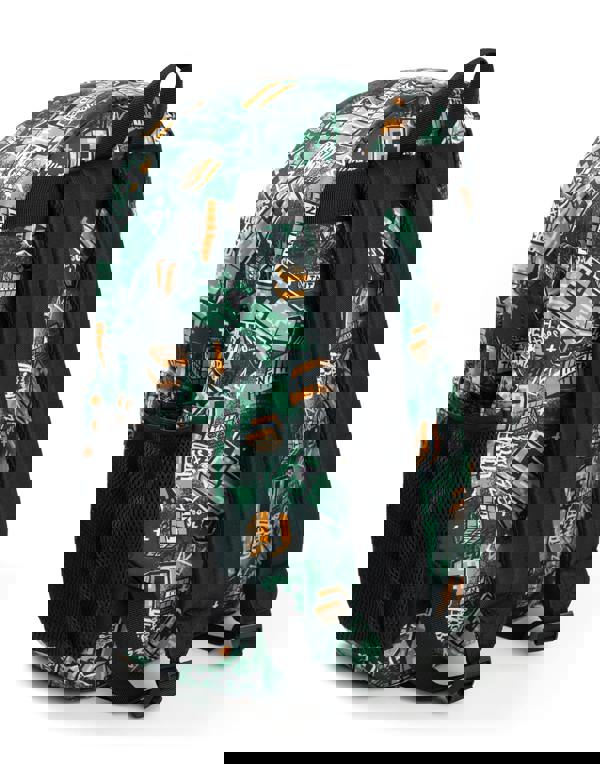 This patterned rucksack features a striking green and black design that showcases the iconic Creeper character from the popular game