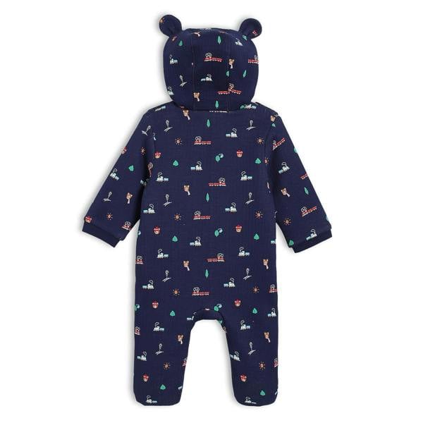 Keep your little one snug and cosy with our Navy Train Print Quilted Pramsuit – the perfect winter essential for chilly days and outdoor adventures. Designed in a soft cotton blend quilted jersey with a smooth cotton lining, this adorable all-in-one wraps your baby in warmth while making every outing extra special.