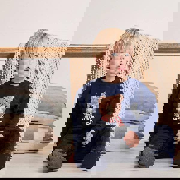 Keep your little one warm and cosy with our Navy Teddy Sweatshirt – a winter essential crafted with love and comfort in mind. Designed in soft brushed-back fleece, this sweatshirt brings together snug warmth, playful details, and everyday practicality.