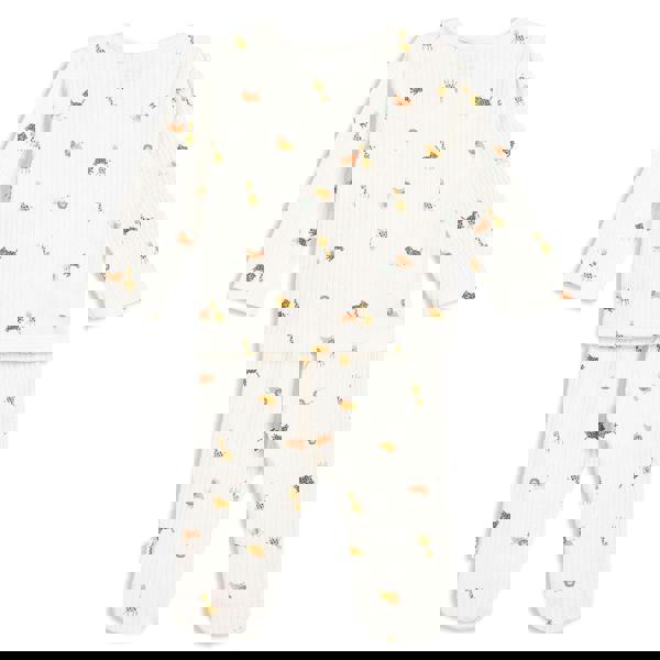 Comfort meets practicality in this adorable 2-piece grow-with-me set. Made from soft, breathable ribbed cotton, this set includes a snap-button kimono-style top and matching footed bottoms, both sprinkled with playful jungle animal prints. Specially designed with a Grow-With-Me waistband, this outfit gently adapts to your baby’s growth, offering longer wear without compromising comfort. Perfect for sleep, play, lounging, or outings, this set keeps your little one cosy, happy, and stylish all day long.