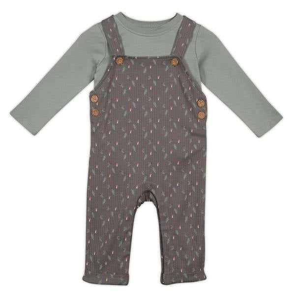 Dungaree – 100% cotton chunky rib with a charming autumn forage all-over print, featuring non-functional turn-up cuffs, button fastenings at the side, and poppers at the gusset for easy changes.