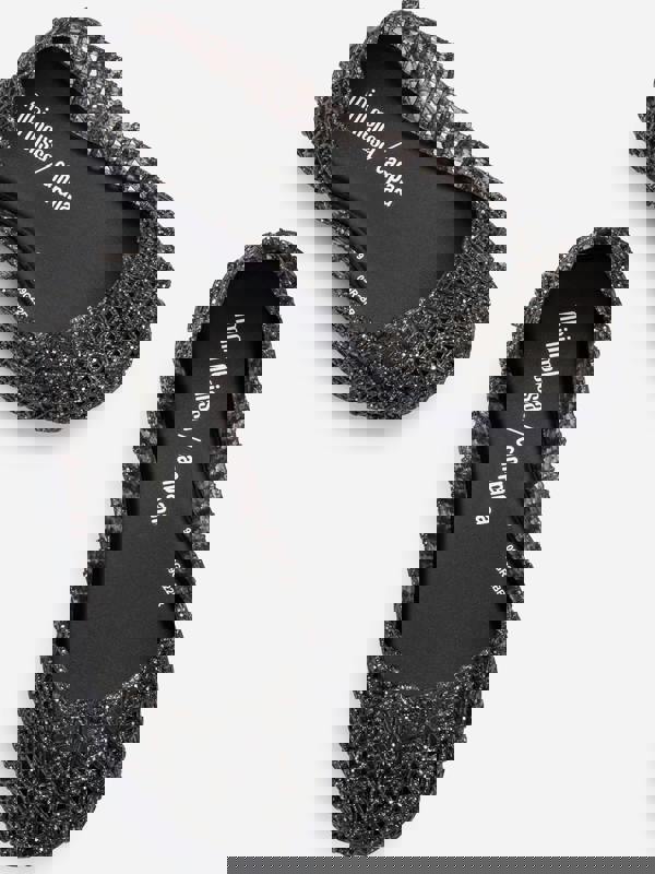 Mini Melissa girls’ ballerina pumps in black with a glitter effect and a distinctive interwoven pattern. Created as part of the Campana Brothers for Melissa collection, this slip-on style keeps the look clean and easy to wear. Made from 100% Melflex®, the design is lightweight for comfortable everyday use.
