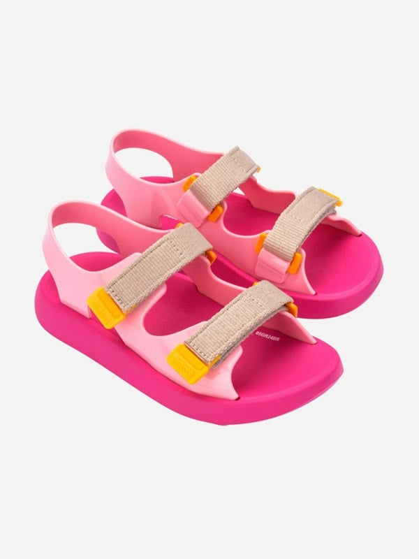 These girls’ Mix sandals by mini melissa come in a pink colourway for a bright, playful finish. The design keeps the look simple and easy to pair, with a soft material construction for comfortable wear.