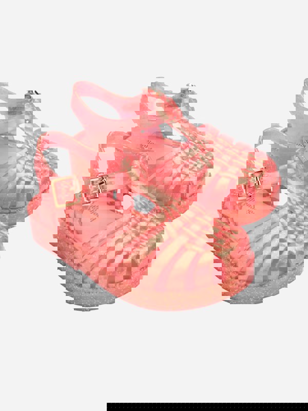 Mini Melissa Girls Possession Shiny Sandals in pink combine a glossy look with a PVC construction. The upper, lining and sole are all made from PVC, using Melflex® PVC. A Velcro strap sits across the foot, finished with a faux buckle detail.