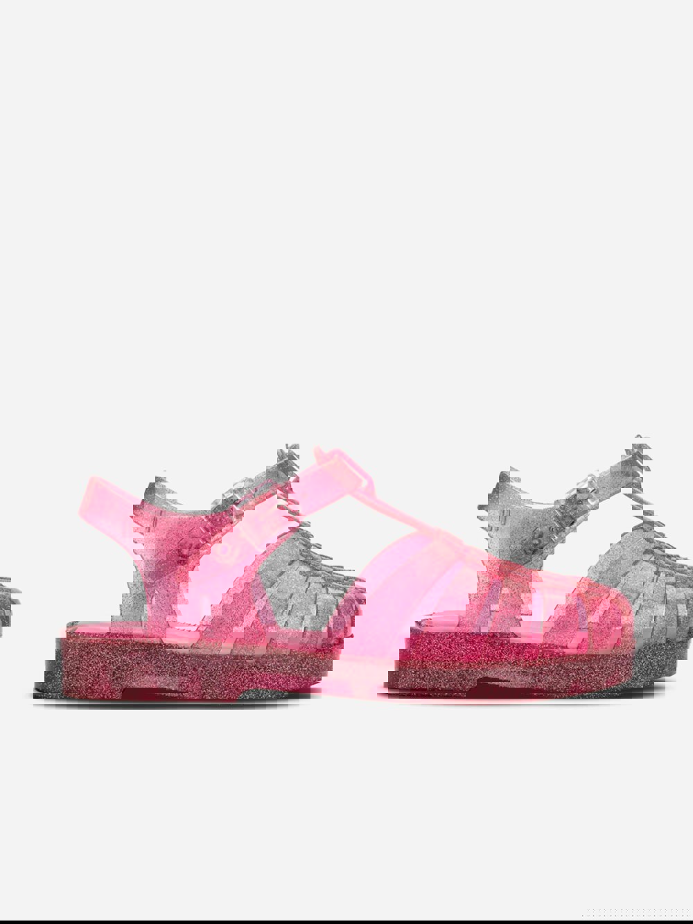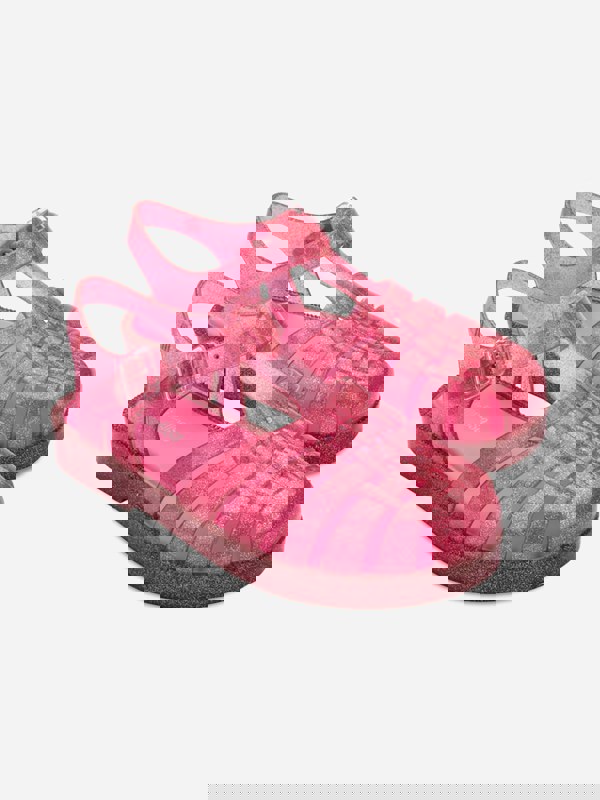 Mini Melissa Girls Possession Shiny Sandals in pink bring a glossy finish to a classic sandal shape. The bright colour and shiny surface create a standout look, suited to the holiday season. A Mini Melissa style, this pair adds a polished touch to everyday outfits and special occasions alike.