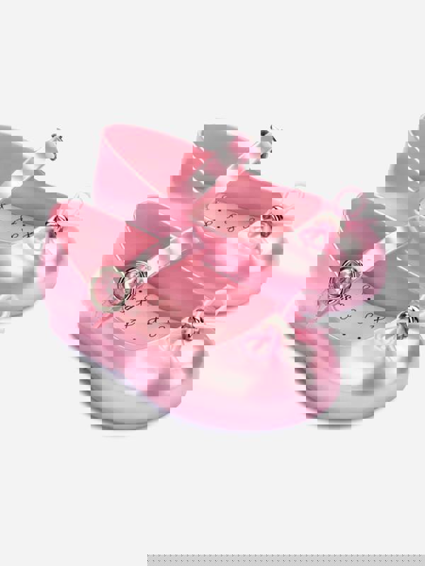 Mini Melissa Girls Sweet Love ballerinas in pink for SS2026. Made by Mini Melissa, this pair combines a glossy finish with a delicate bow for a classic ballerina look. The soft, padded insoles add comfort for everyday wear, while the PVC construction is both eco-friendly and waterproof.