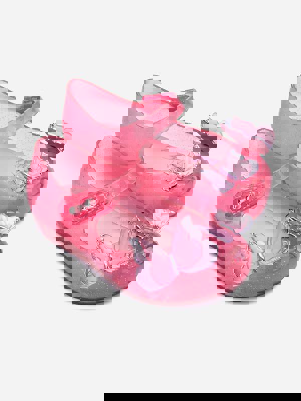 Mini Melissa Ultragirl Fly III ballerinas bring a bright pink finish to a classic flat silhouette. Made from soft Melflex plastic, this pair uses a sustainable material choice while keeping the look clean and simple. A butterfly detail adds a playful focal point at the front, and the signature Mini Melissa scent is infused into the shoe.