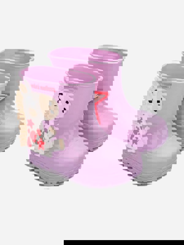 Mini Melissa Girls Wonderland Wellies in purple bring a playful look to wet-weather dressing for AW2025. The boots come in a vivid royal purple and use softly scented rubber for a subtly perfumed finish. Bow detailing on each boot adds a decorative touch while keeping the overall style clean and easy to wear.