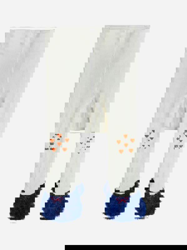 Mini Rodini baby girls doggie anti-slip tights in ivory for SS2026. The design includes a doggie motif and integrated anti-slip soles.