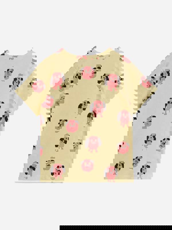 This baby girls T-shirt by Mini Rodini comes in yellow with an all-over doggies print. Made from organic cotton with added elastane, it has a soft, flexible feel for everyday wear. The relaxed tee silhouette keeps the look casual, while the ribbed crew neck adds a neat finish.