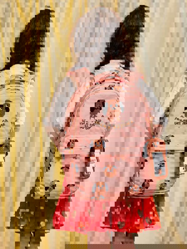 The Mini Rodini Girls Doggies AOP Backpack in pink brings a playful look to everyday outings, with an all-over doggies print and an embroidered dog design for added character. Designed to be both fun and practical, it’s a handy choice for day-to-day use.