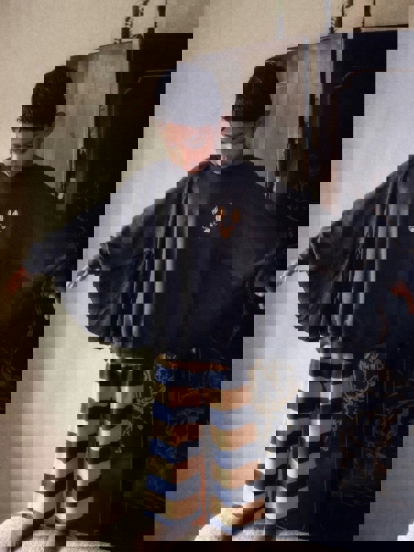 Mini Rodini Kids Bat Sleeve Sweatshirt in black brings a bold graphic look to everyday outfits. A bat print sits on the front, paired with bat-shaped sleeves for a distinctive silhouette. Made from soft organic cotton, it offers a comfortable feel for regular wear.