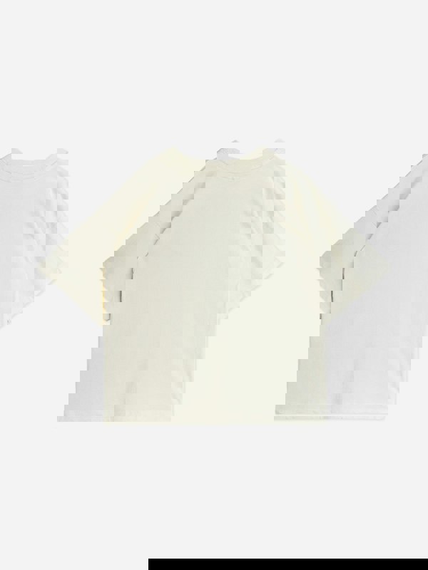 Mini Rodini Kids E.T. embroidered t-shirt in ivory for SS2026. The front embroidery shows the E.T. character in detailed stitching. The neutral ivory colour keeps the look clean and simple.