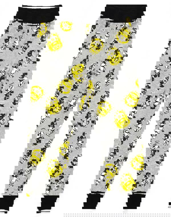 The kids and teens pjs come in black and grey, contrasting against a vibrant Stuart and Tom the Minions character print