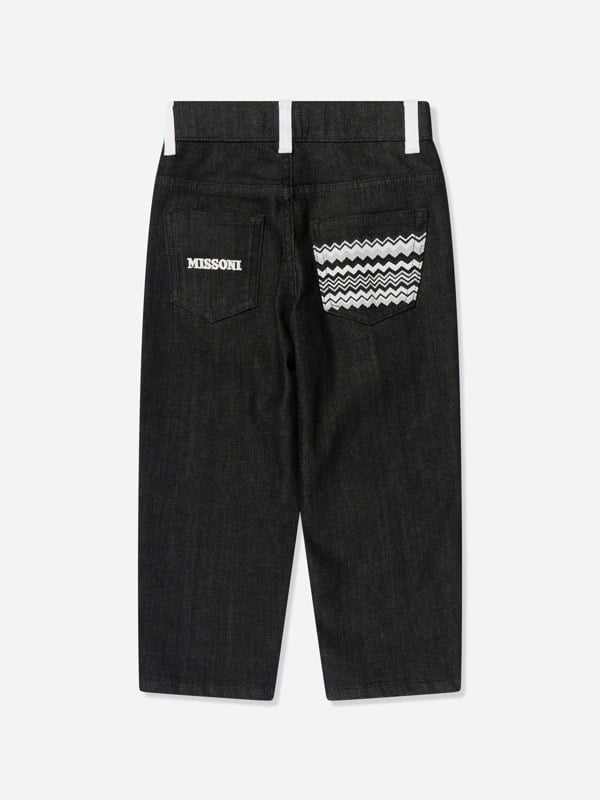 These black jeans from Missoni combine classic denim detailing with signature brand motifs. Made in Italy from stretch denim, they have a five-pocket layout with metal rivets and a button and zip-fly fastening. The back pocket carries Missoni’s zig-zag embroidery, while the other pocket has logo needlework. A white coin pocket adds contrast at the front.