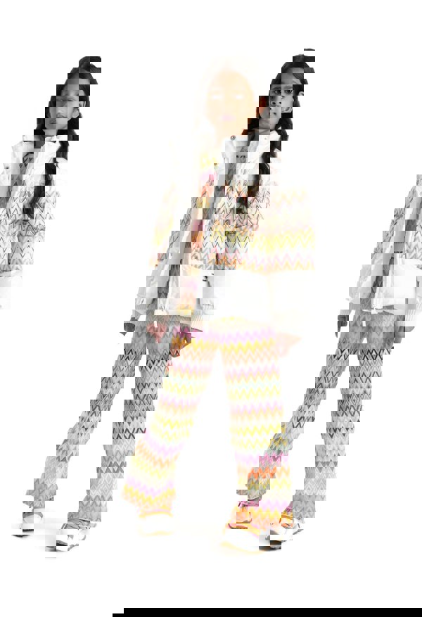 These Missoni girls knitted trousers bring the brand’s iconic zigzag pattern to a multicolour finish. Made in Italy, they offer a distinctive look for AW2024, with the all-over knit construction highlighting the signature Missoni aesthetic.