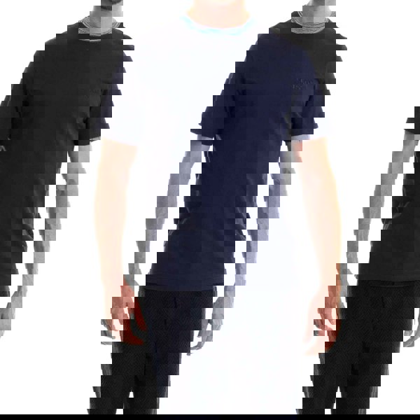 Elevate your casual wardrobe with the Missoni Short Sleeve T-Shirt featuring a striking blue navy base enhanced by a unique blue and purple space-dyed pattern.