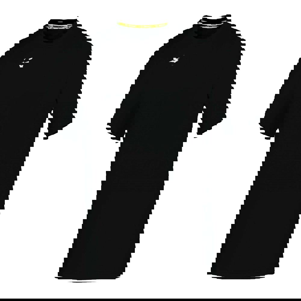 This men’s Core short-sleeved T-shirt from Mizuno is made from 100% polyester with a soft-touch feel. It comes in black with a plain finish, logo detail and a silhouette design. A crew neckline and short sleeves keep the look clean and practical for sports wear.