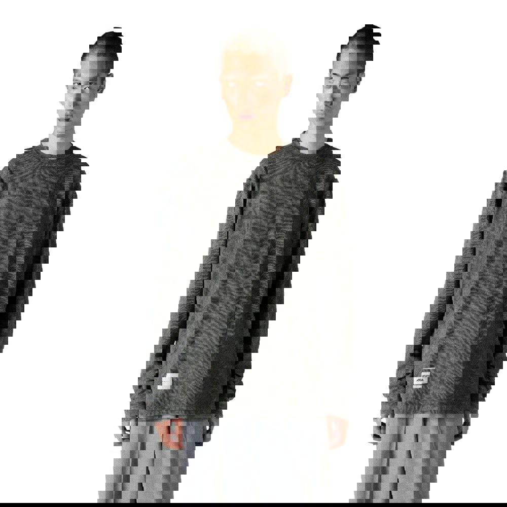 This long-sleeved T-shirt is made from 100% cotton and finished in grey. It has a crew neck and a plain base, detailed with a back print, embroidered elements, a logo and a patch for added interest.