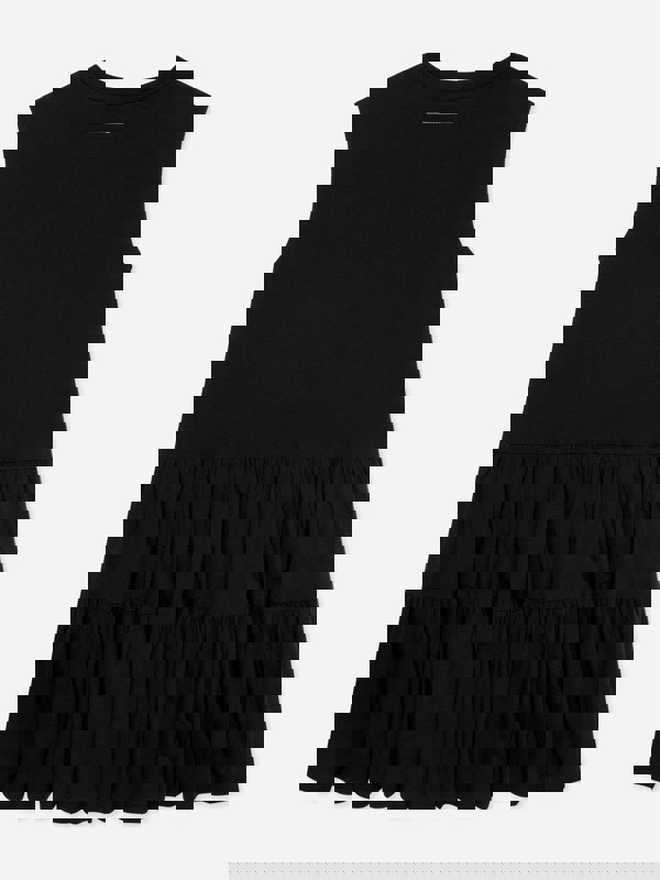 MM6 Maison Margiela brings modern innovation and technicality to a carefully considered wardrobe. This girls’ jersey dress comes in black and is made from 100% cotton. A sleeveless cut and round neckline keep the shape clean and simple, while the pleated hem adds definition to the finish. Small statement branding completes the look with a subtle designer touch.