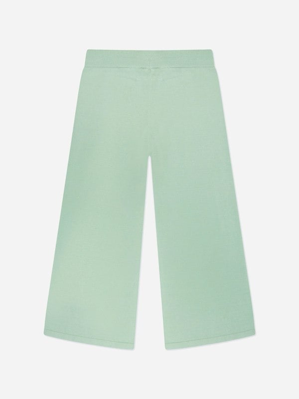 MM6 Maison Margiela kids culotte trousers in green. The design uses a woven cotton material and includes an elasticated waistband with a drawstring. Branded embroidery runs down the side for a clear label finish.