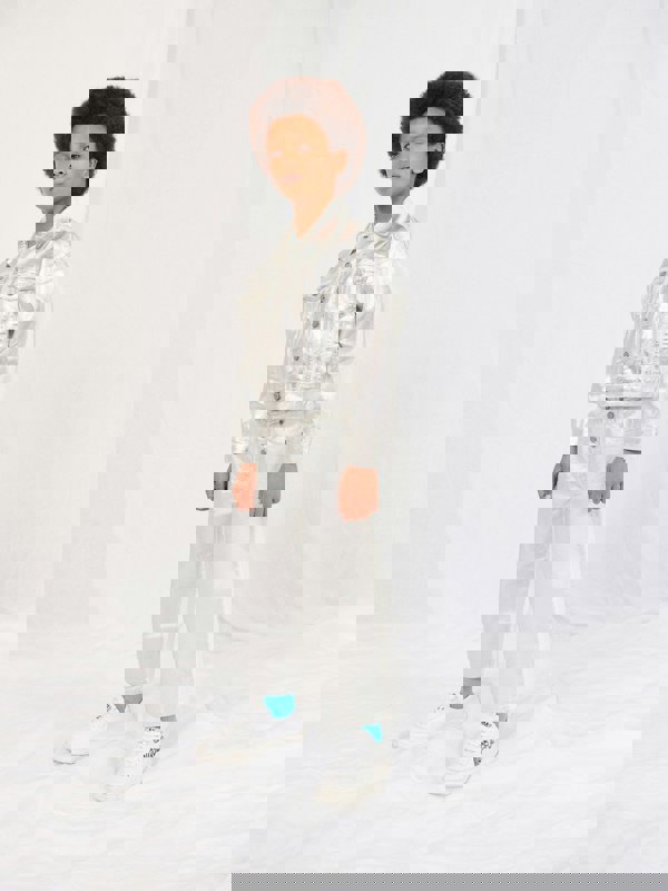 MM6 Maison Margiela kids metallic effect jeans in silver bring a modern finish to classic denim. Made from 100% cotton, the design combines a metallic-effect front with a white cotton base on the back. A mid-rise cut and straight leg shape keep the look clean and easy to wear, while the back elasticated waistband adds flexibility.