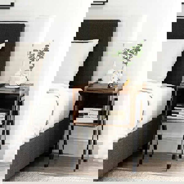 Bring industrial charm and functional storage to your bedroom or living room with this rustic 2-tier bedside table. Featuring an engineered wood top and open metal frame this unit provides a stable space for your books essentials and décor.