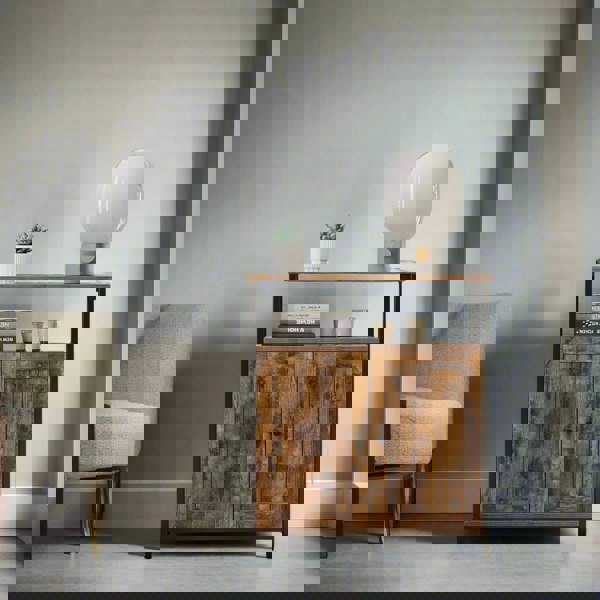 Add a dash of glamour to your living room, hallway, or bedroom with this industrial-style storage cabinet featuring a sturdy black steel frame and rustic brown particleboard. The open shelf and slat door provide a perfect balance between display and hidden storage for your vases, photos, magazines, and daily essentials. Built for stability and durability, this cabinet features adjustable feet and strong materials designed to last. Easy to assemble with numbered parts and clear instructions, it’s a practical and stylish addition to any home.