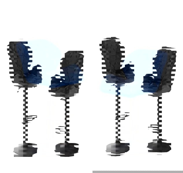 Bring elegance and comfort to your kitchen or bar area with this set of 2 modern velvet bar stools. Upholstered in rich blue velvet with high-density sponge cushioning and a waterfall edge seat, these stools offer a luxuriously soft and ergonomic seating experience.