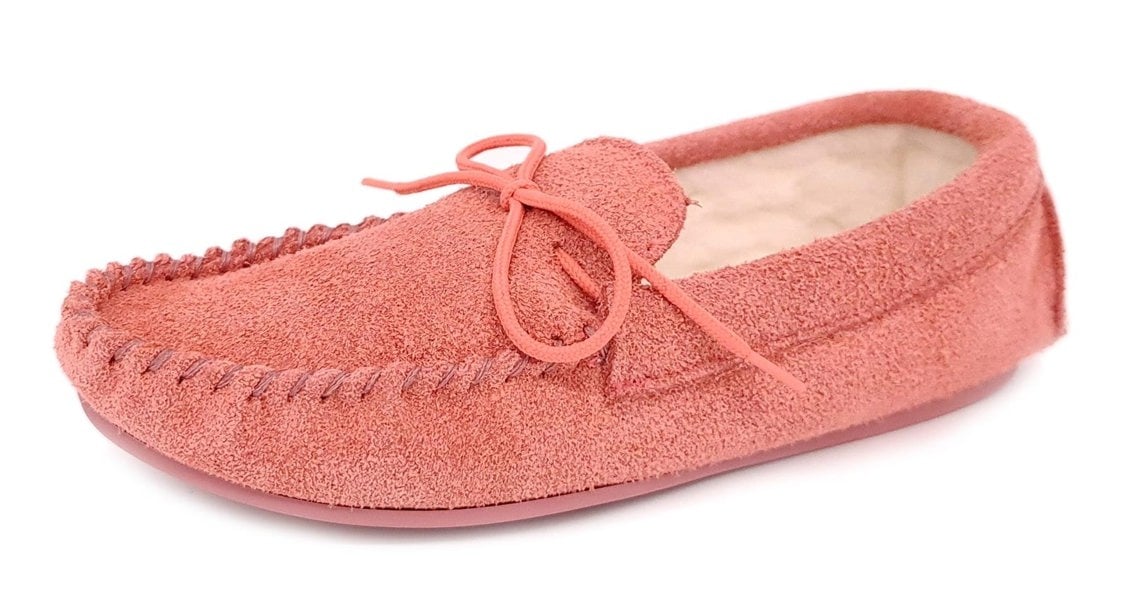 These Suede Moccasin Slippers are fully lined with Genuine Wool and features a Suede Upper making these moccasins beautifully warm and luxurious