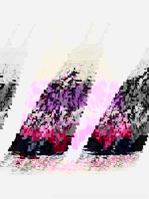Molo brings a distinctive outlook to childrenswear, and this Twilight dress captures that bold approach through its island-inspired print. Made from off-white organic cotton, it carries a deserted island scene in purple, pink and black for a striking multicolour finish.