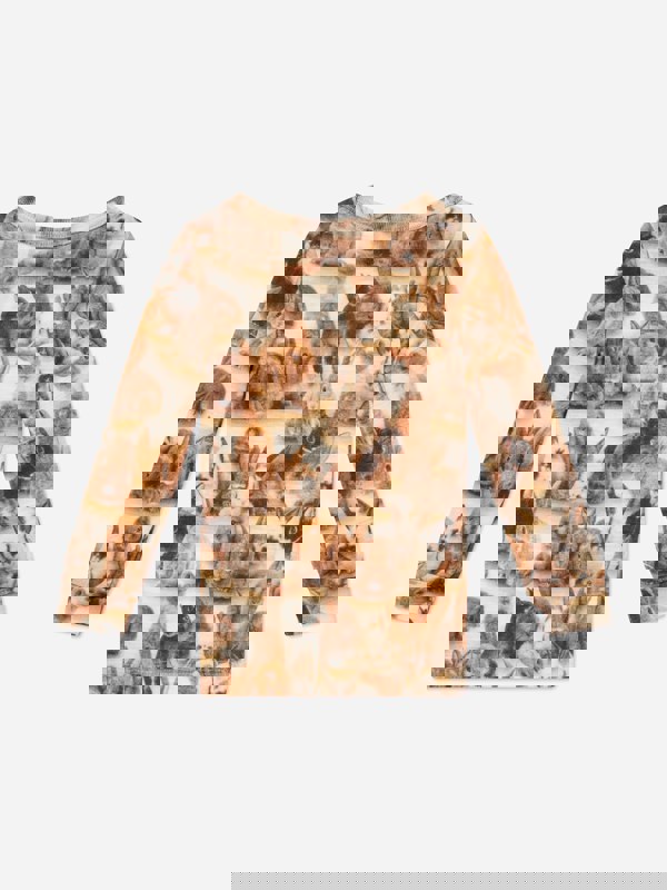 Molo kids long sleeve rabbits T-shirt in beige adds a playful touch to baby unisex outfits. The front has a rabbit print for a contemporary look, paired with long sleeves for everyday wear.