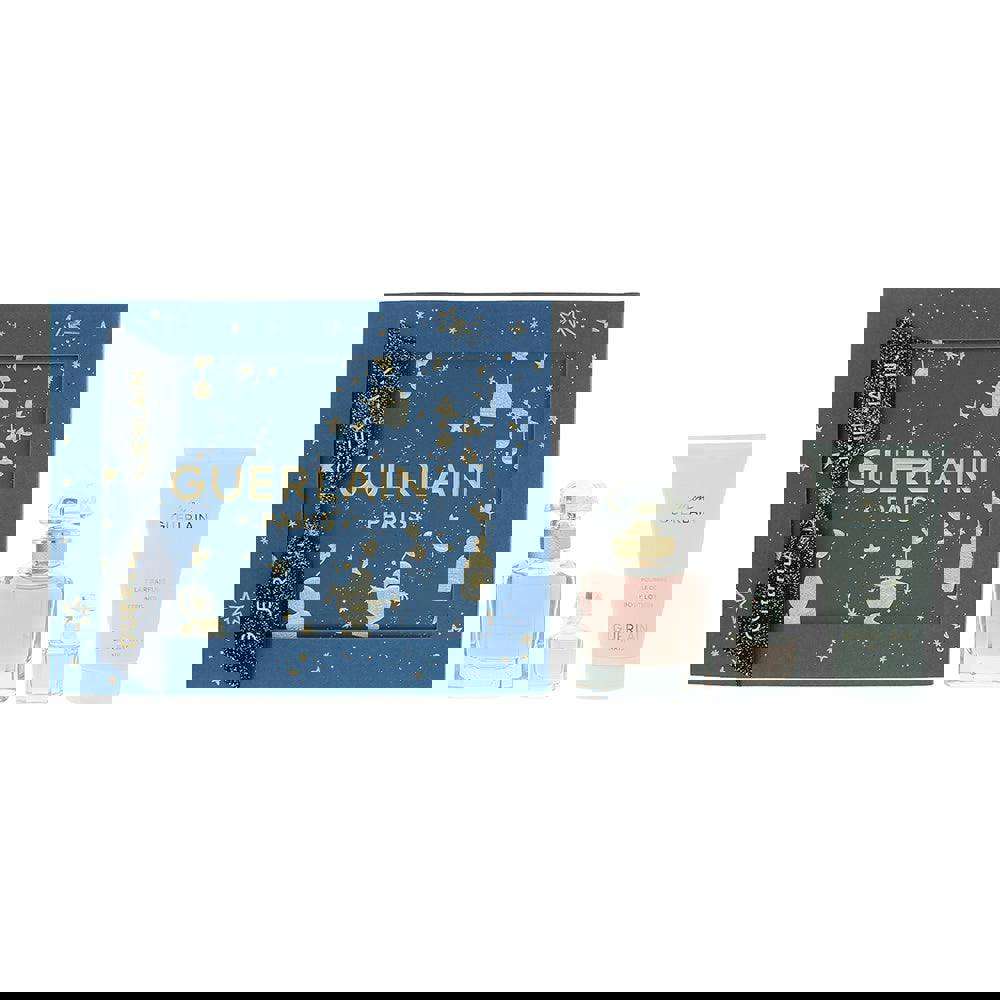 The composition traditionally opens with sparkling bergamot, unfolding into a floral heart before settling into a signature base where vanilla, iris and resinous notes come through. Alongside the Eau de Parfum, the matching body lotion offers a complementary way to wear the scent while helping to soften the skin. A miniature Eau de Parfum completes the set, ideal for travel or quick top-ups.