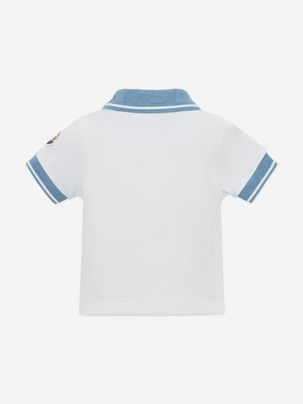 This Moncler Enfant polo shirt for baby boys comes in white for SS2026. It has a classic polo collar and a button placket, finished with a subtle Moncler logo on the chest.