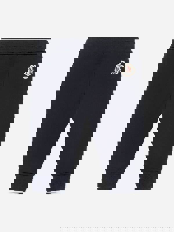 These Moncler Enfant joggers for baby boys come in navy cotton jersey with added stretch. Tricolour trims run down the edges, bringing a distinctive contrast detail to the clean, sporty look. An elasticated waistband and ribbed cuffs complete the finish.