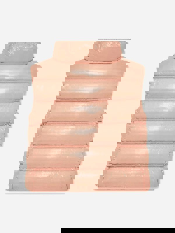A zip closure keeps the front secure, and pockets complete the streamlined silhouette. Finished in pink, this gilet combines signature Moncler Enfant styling with considered fabric choices and a simple, functional shape.
