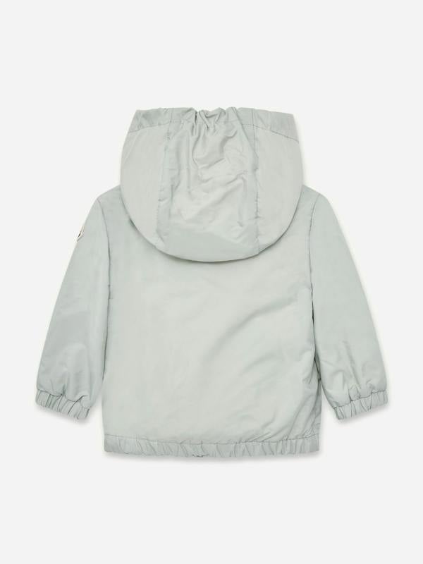 This Moncler Enfant Nigar jacket for baby girls comes in grey and is made from 100% polyamide riciclato. Styled as a windbreaker, it has long sleeves and a hood for a practical outer layer.
