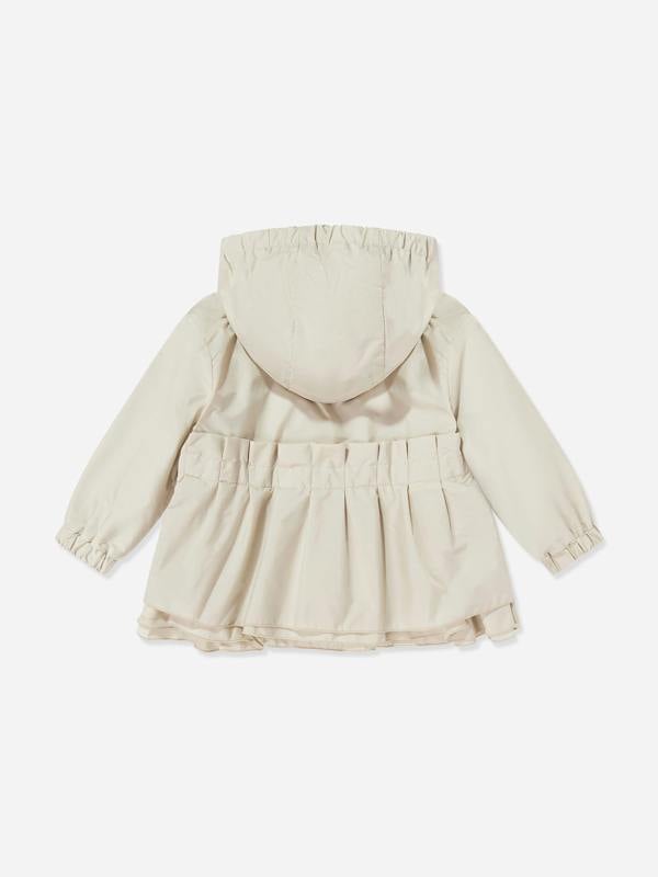 The Moncler Enfant Wete jacket for baby girls updates a classic parka shape in a beige finish. Crafted in recycled technical nylon, the main fabric is water-repellent for practical wear through the mid-season. An adjustable hood adds coverage, while elastic cuffs help keep the silhouette neat.