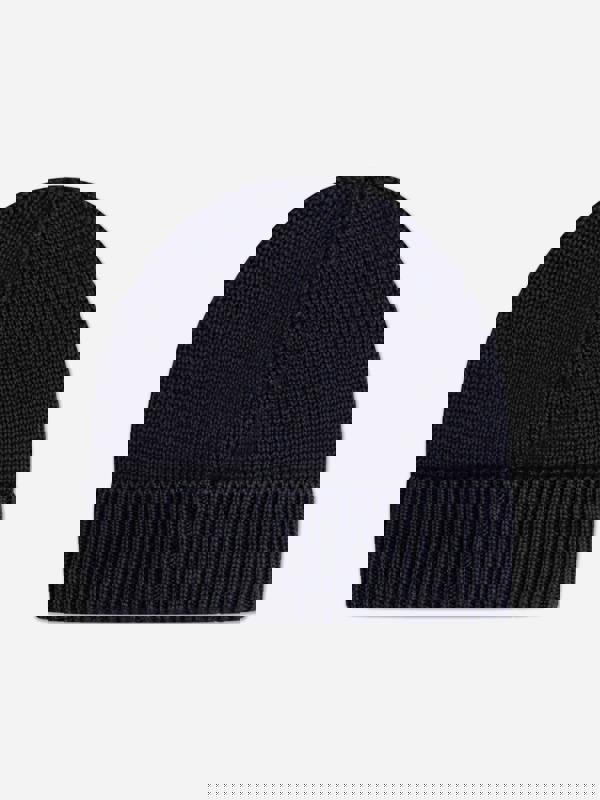 Moncler Enfant baby logo beanie hat in navy for SS2026. Made in Italy, this winter accessory carries the Moncler logo for a clean, recognisable finish. Soft fabrics provide gentle warmth and comfort.